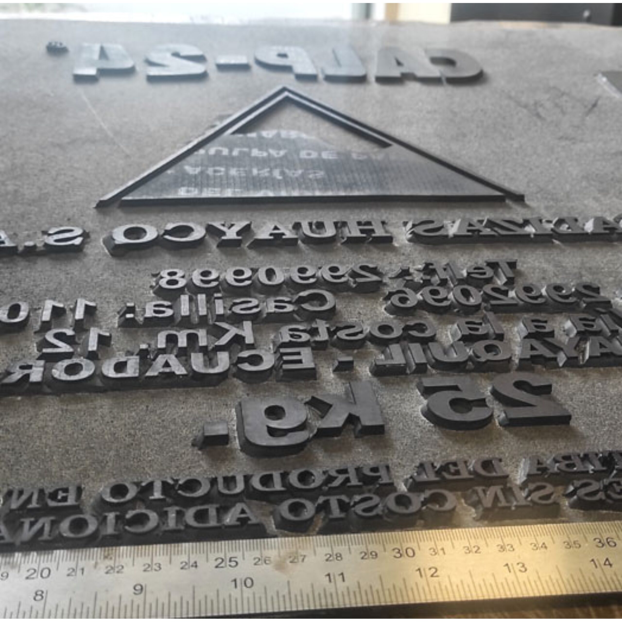 Contamos con cliché en jebe vulcanizado para estampados precisos y duraderos en sacos y más.